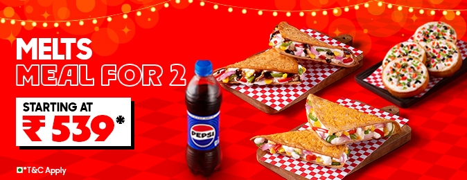 The perfect "We Time" meal. Choose any 2 Melts flavour & enjoy with 1 Exotica Veggie Garlic Bread & 1 Pepsi PET