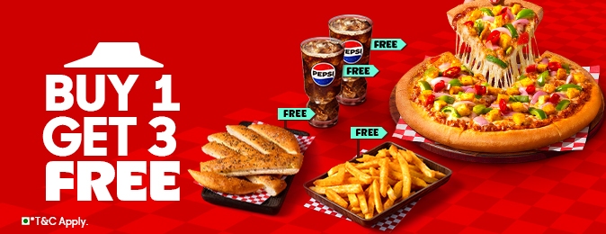Order a Medium/Thin n Crispy pizza & get Classic Breadstix, Cheezy Sprinkled Fries, & Pepsi, absolutely FREE! Choose any pizza from Delight to Supreme range & get ready for a feast on us!